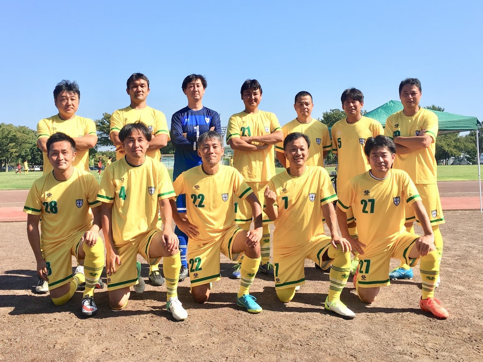 今年から参戦したシニアリーグ、現在、ロクFC O-40は14チーム中13位と初参戦にふさわしいポジションをキープしつつ、残り4試合という終盤を迎えている。今節は会場担当ということで、熊谷さくら運動公園に早朝7時に集合し、ライン引きやゴール設置などの会場セッティングから、本部での記録などの運営全般を参加メンバー全員で行った。